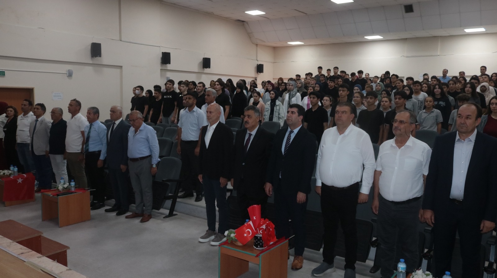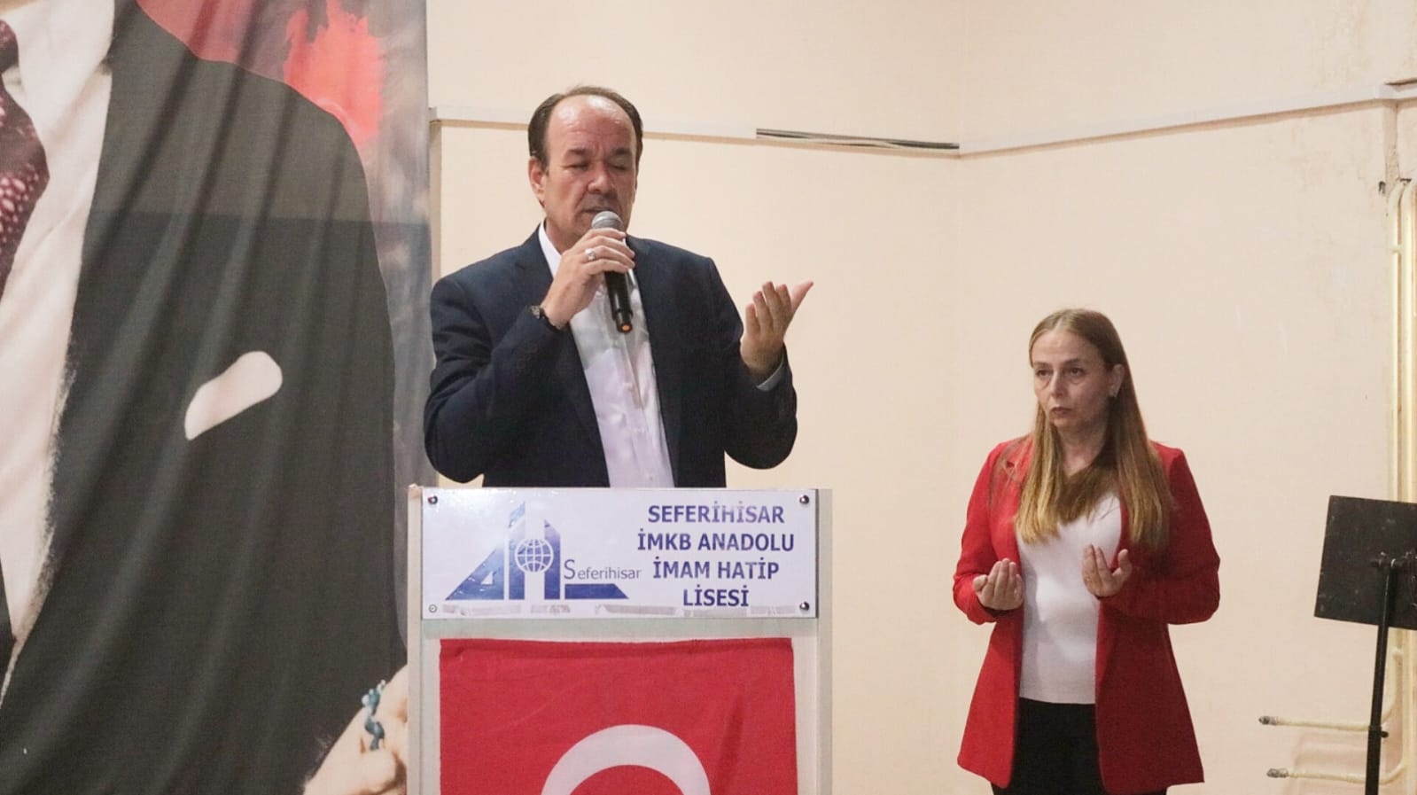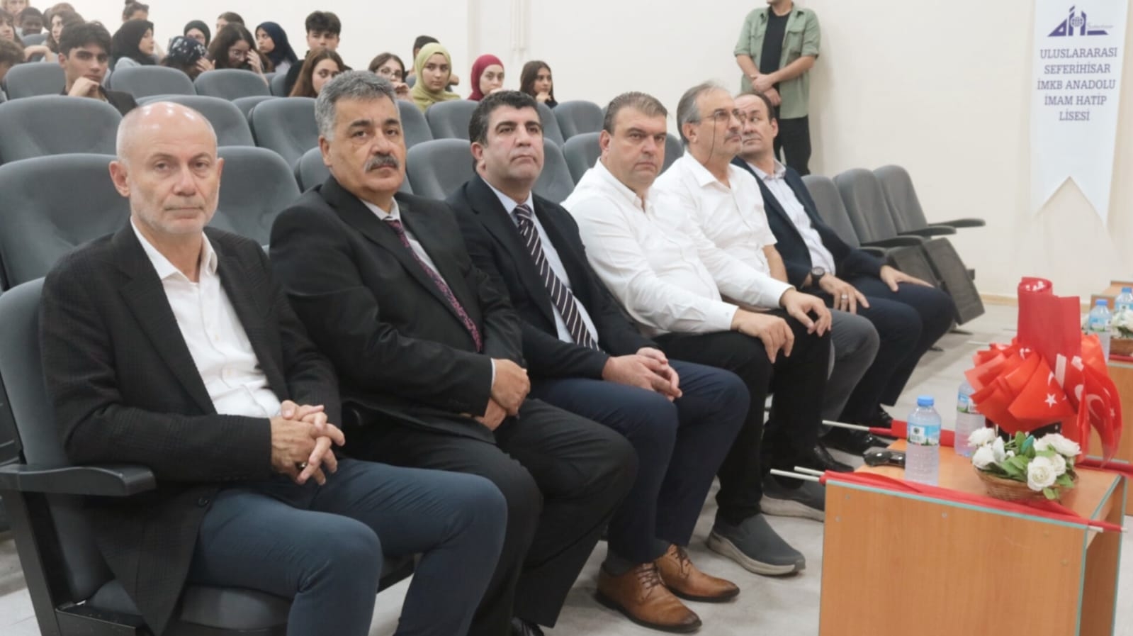 15 Temmuz Demokrasi ve Milli Birlik Günü Anma Programı, ilçemiz Uluslararası Seferihisar İMKB Anadolu İmam Hatip Lisesinde gerçekleştirildi. Aziz Şehitlerimiz anısına 1 dakikalık saygı duruşunun ardından İstiklal Marşımızın okunmasıyla başlayan program, okul öğrencisi tarafından okunan Kuran-ı Kerim Tilaveti, Müdür Yardımcısı Sn. Neval ERDOĞAN'ın günün anlam ve önemini ifade eden konuşması, 15 Temmuz Demokrasi ve Milli Birlik Günü konulu sinevizyon gösterisi ve okul öğrencilerince okunan şiirlerle devam etti. Kaymakamımız Sn. Mehmet Şerif OLÇAŞ, Belediye Başkanımız Sn. İsmail YETİŞKİN, İlçe Müdürümüz Sn. Ahmet Vehbi KOÇ, Jandarma Komutanımız Sn. Binbaşı Abdülkadir ŞİMŞEK, İlçe Müftümüz Sn. Abdullah VURUCU, AK Parti İlçe Başkanı Sn. Serdar KISAAĞA, okul - kurum idarecilerimiz, veli ve öğretmenlerimizin katılımlarıyla gerçekleşen program, Okul Müdürü Sn. Süleyman ÖZTÜRK tarafından yapılan duanın ardından toplu fotoğraf çekimi ile sona erdi. Aziz şehitlerimizi rahmetle anıyor, programda emeği geçen Uluslararası Seferihisar İMKB Anadolu İmam Hatip Lisesi idareci, öğretmen, okul personeli ve öğrencilerine tebrik ve teşekkürlerimizi sunuyoruz.